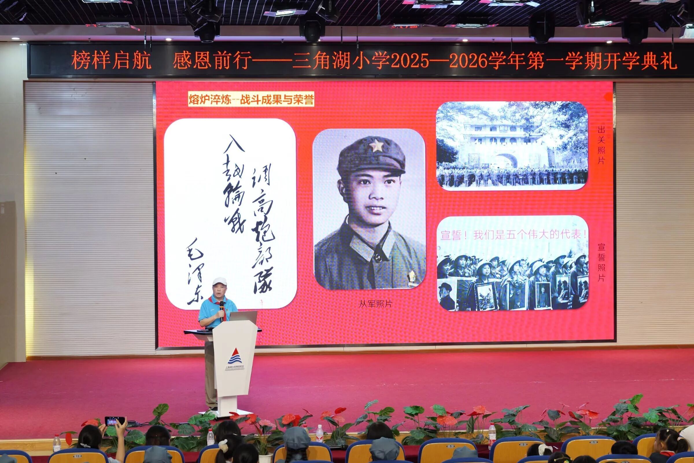 “今天特别开心,能和孩子们聊聊过去的事儿。”在三角湖小学,少先队员带领新生探秘科技长廊,班主任引导新生校园游园,熟悉校内环境。面对孩子们“想听战斗故事”的期待,抗美援越老兵胡恩超登上讲台,讲述在异国他乡,与战友坚守阵地的战斗故事。那些带着硝烟的细节,让课本里的英雄故事变得鲜活可触,台下的小学生们攥紧拳头,望向老兵的眼神中满是敬意。