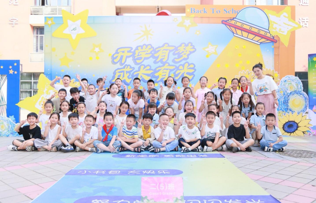 沌口小学校园内,学生们将写满新学期目标的黄色星星贴于汇集全校姓名的主题展板,颗颗繁星承载少年理想,在集体见证中强化归属感,传递“成长报国”的决心。