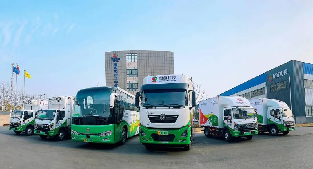 ▲搭载“氢腾”燃料电池的氢能车辆。