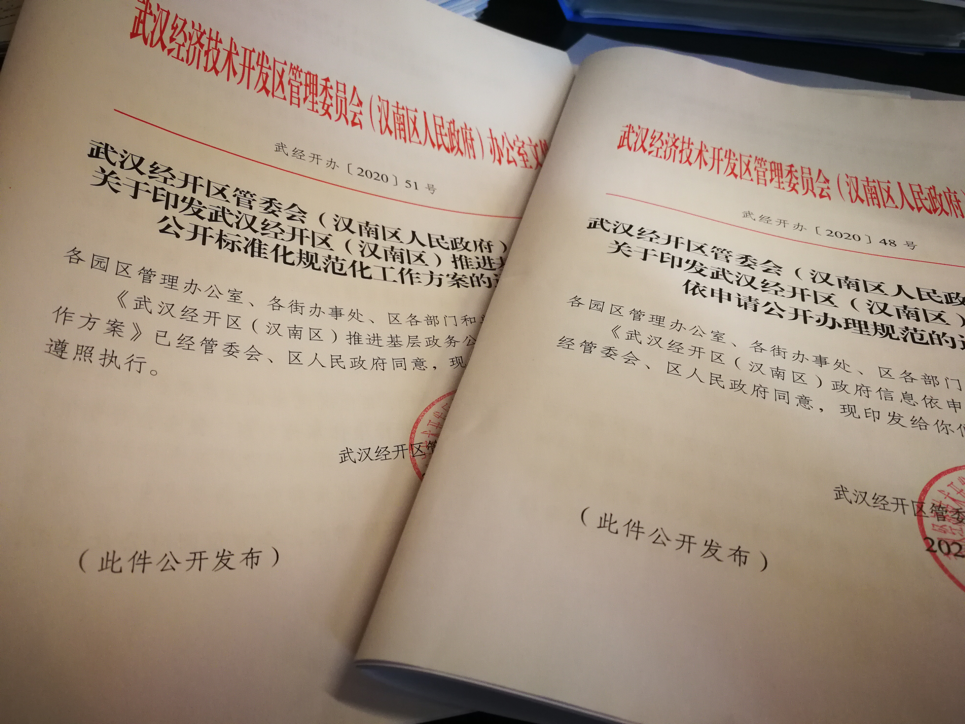 1.完善政务公开制度规范体系。已制发《武汉经开区管委会(汉南区人民政府)办公室关于印发武汉经开区(汉南区)政府信息依申请公开办理规范的通知》;