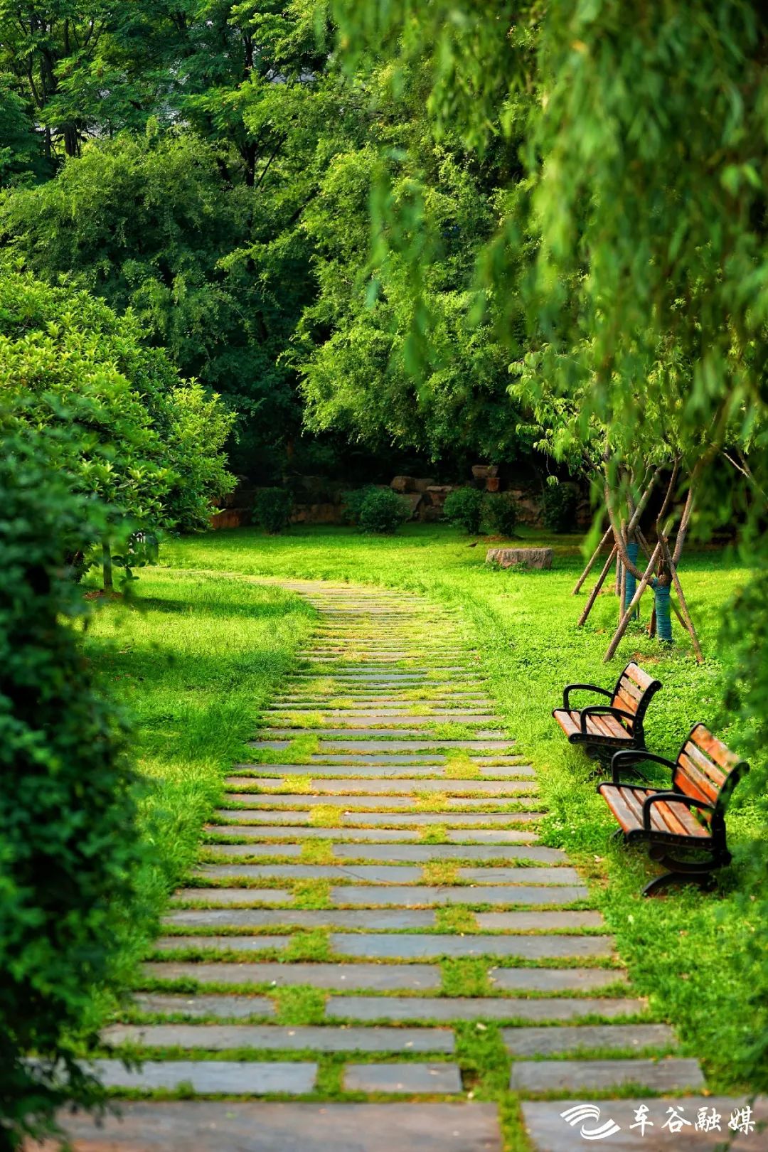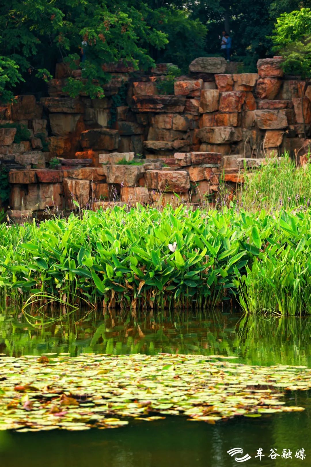 6月盛夏,汤湖公园内已是绿荫一片,走在园区步道上,并不感觉炎热,向汤湖望去,水面上的荷花已结出花苞,岸边的柳叶随风摆动,负责日常维保的工人正在清理湖面的断草。