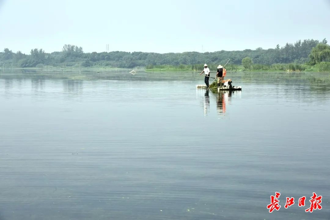 ▲汤湖上正在打捞水草的作业船。长江日报记者戴红兵 摄 资料图