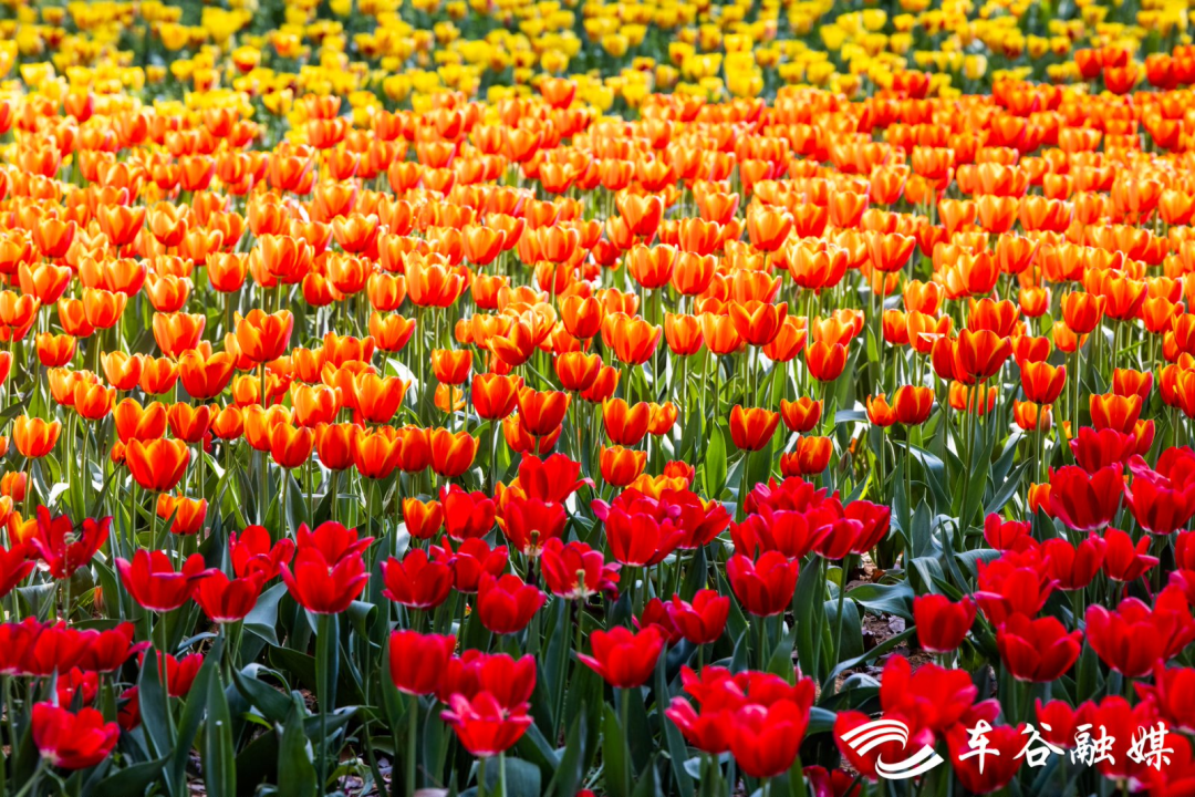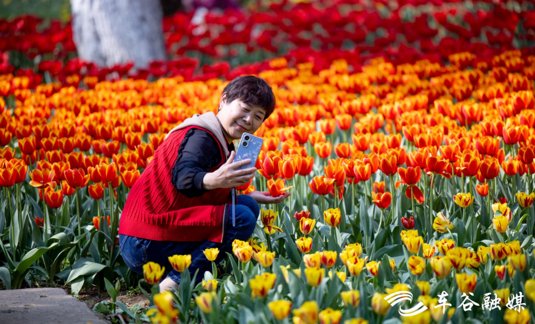 湖边,各色郁金香悄然绽放,铺满整个湖岸,走进花丛,就走进了油画般的春天。