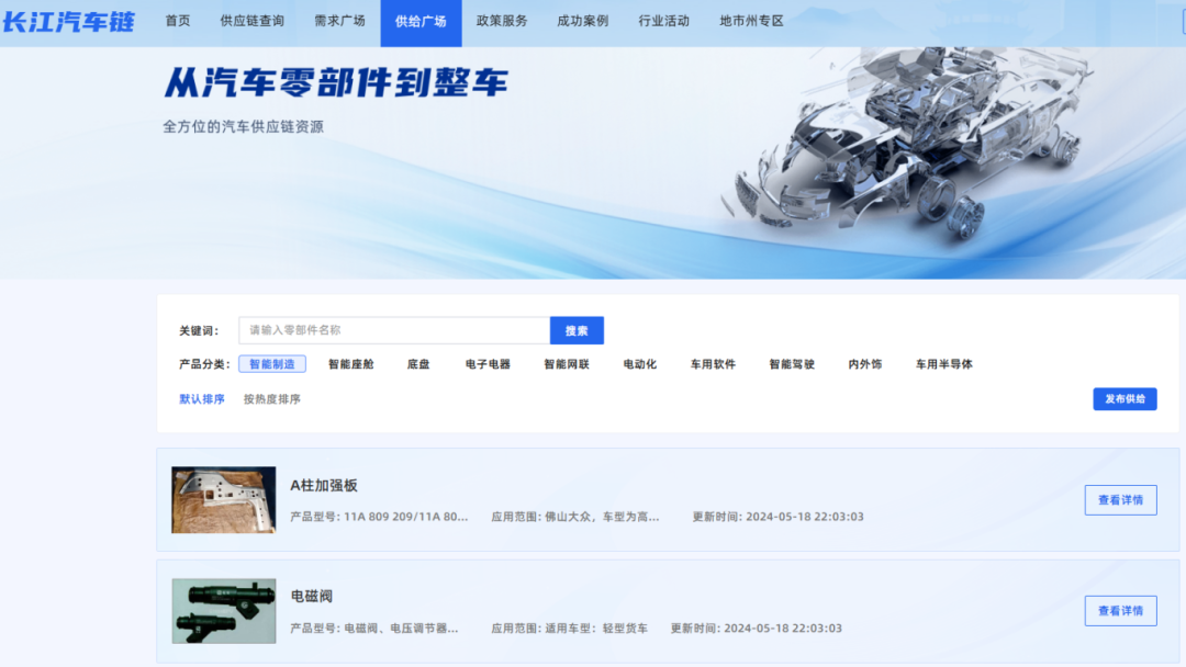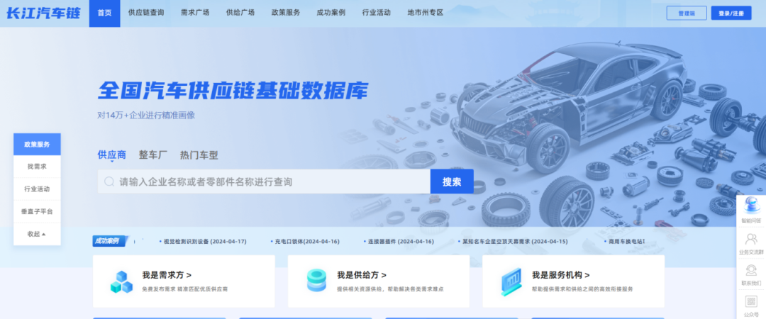 长江汽车链平台设有“需求广场”“供给广场”大板块,为企业提供全方位的供需对接服务。在需求广场,企业可以发布需求信息,平台通过智能匹配,帮助企业快速找到符合要求的供应商。同时,企业也可以在供给广场上发布供给信息,展示产品和服务,方便采购商进行搜索和匹配。这种高效的供需对接方式,有助于提高供应链协同效率,实现资源的高效配置与利用。