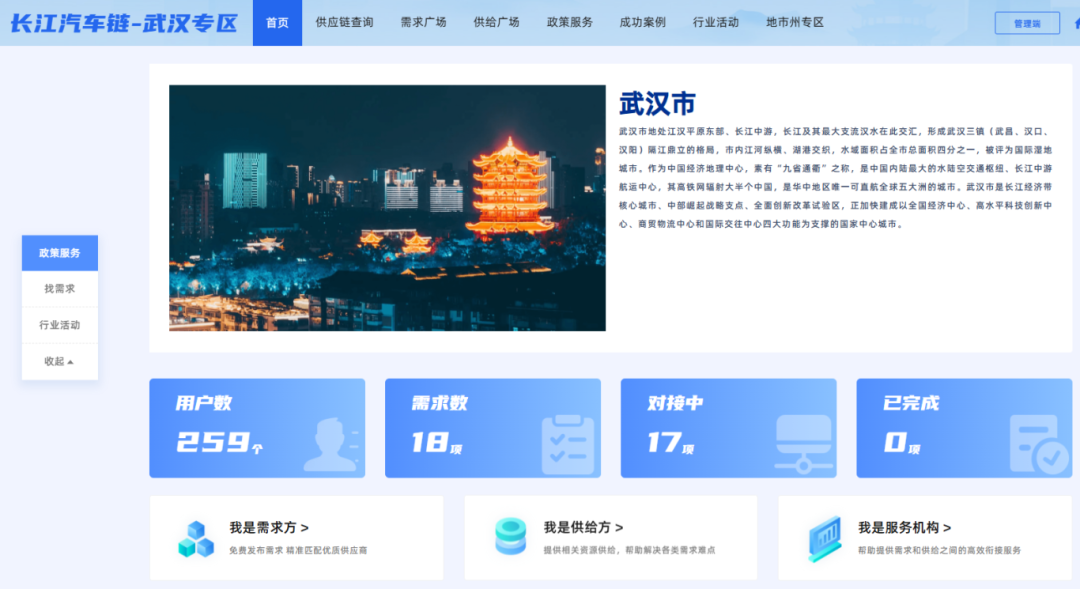 此外,长江汽车链平台还设立了地市州专区,整合湖北各地市州的企业需求、服务供给、政策信息和活动资源,为地方政府和企业提供更多的个性化服务。